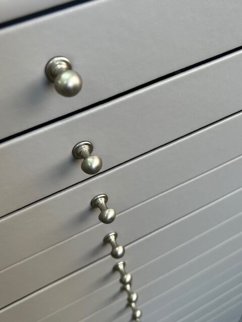 Le cassettiere Giotto realizzate per il cliente Officina dell’Occhiale di Melzo, mostrate nelle foto, rappresentano un esempio eccellente di artigianato su misura. Questi mobili sono progettati per soddisfare esigenze specifiche e combinano funzionalità ed estetica in modo elegante e pratico.